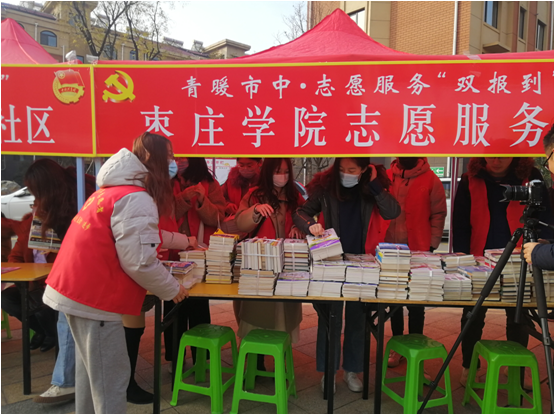 beat365官网beat365官方网站党总支书记宋建修代表beat365官方网站把党员师生捐赠的400册图书捐给矿区街道东花园社区图书室,beat365官方网站和机关四支部20名师生党员志愿者参加了服务进社区、志愿入家门活动。