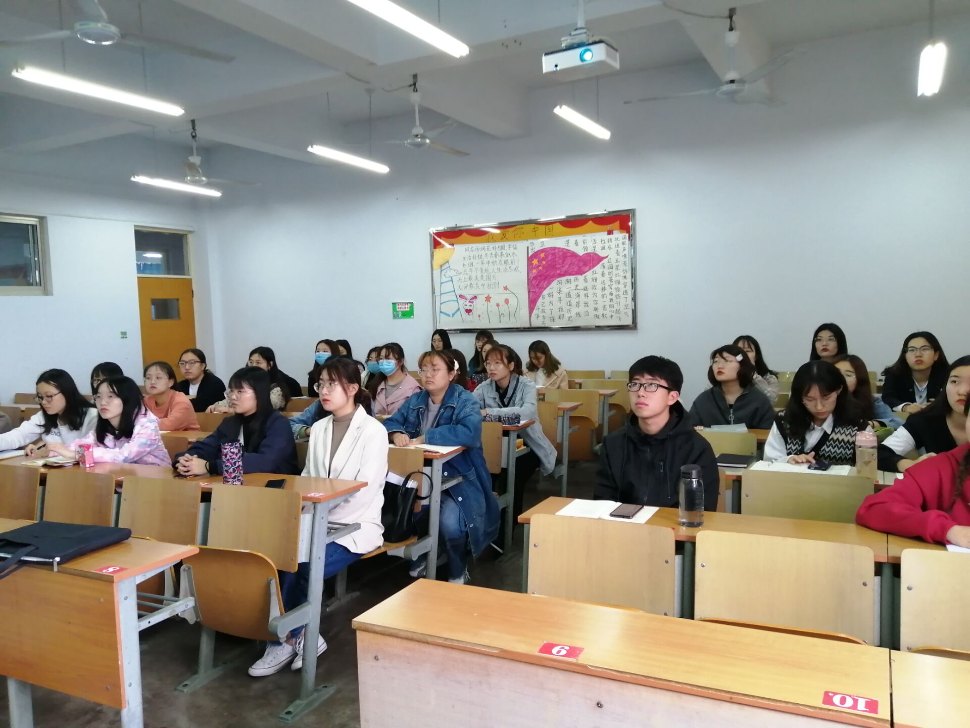 韩笑老师通过介绍并播放红歌等歌曲,简要地梳理了党史发展的重点脉络,带领同学们鉴赏优秀歌曲,体会歌曲背后暗含的感人故事和时代历史,回顾党发展的艰难、光辉历程,畅谈党建设的伟大成就,加深了同学们对党史的了解,增强了民族自豪感与责任感,激发了同学们的爱党爱国热情。同时,韩笑老师穿插讲述了为什么要学习党史和为什么要唱红歌的重大问题。