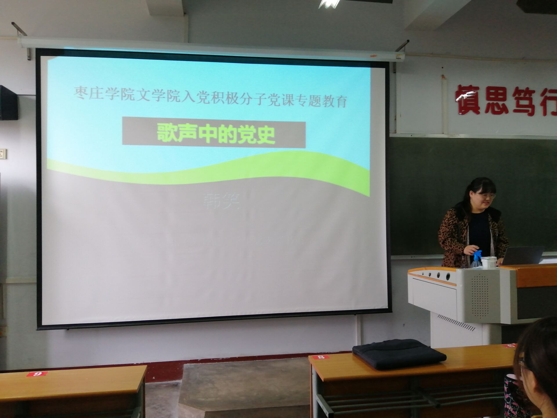 为帮助入党积极分子梳理党史脉络,加强对红歌的鉴赏,beat365官方网站于10月14日下午在文科楼317教室开展了课堂教学——歌声中的党史,beat365官方网站团总支书记韩笑老师受邀担任主讲。