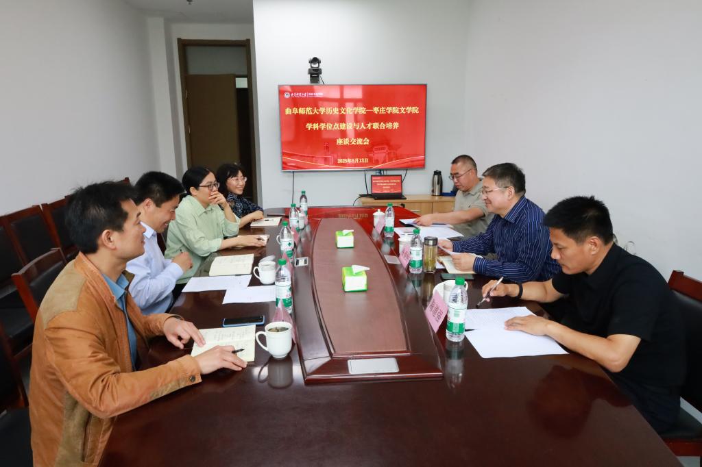 在曲阜师范大学历史文化学院座谈中,副院长王京传及研究生教育相关人员参与交流。双方分别介绍了历史学专业发展的基本情况,就历史学专业的教学、科研等问题展开深入探讨。曲师大历史文化学院重点分享了历史学专业申硕工作的经验,为我院的申硕工作提出了针对性建议。双方就人才联合培养工作达成了初步共识。