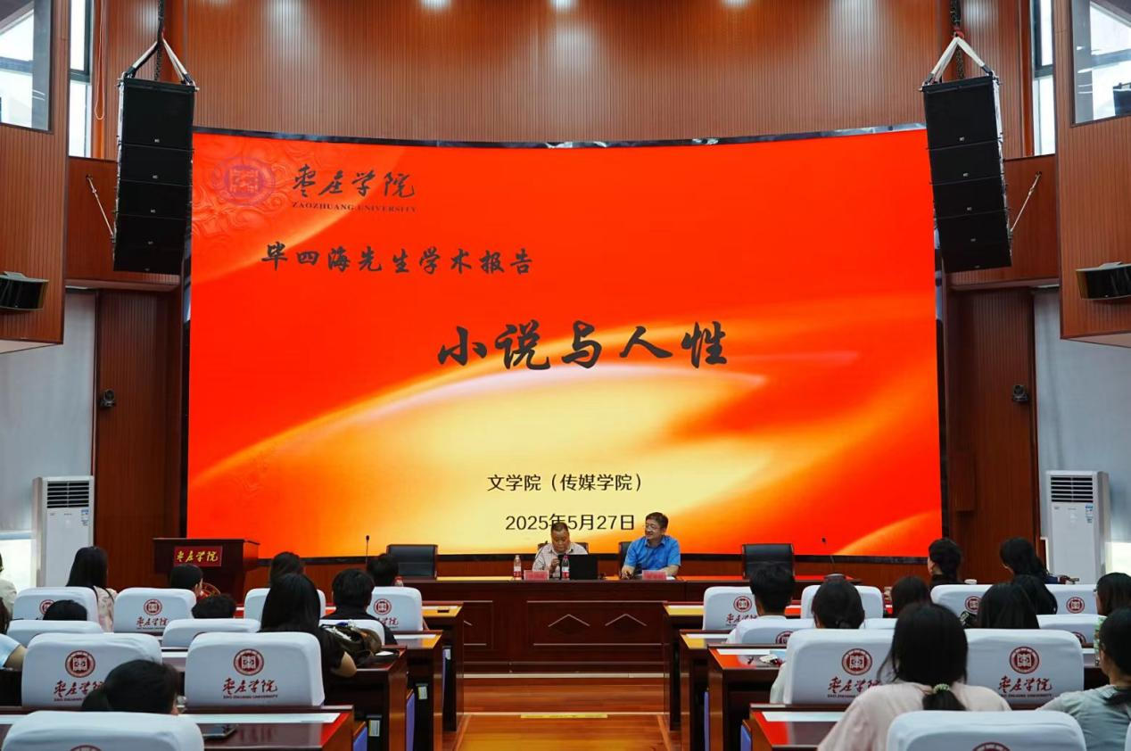下午,beat365官方网站(传媒学院)特邀1978级优秀校友代表、原山东作协副主席、《山东文学》杂志社社长(主编)毕四海在薛城校区豁然楼C110报告厅作了题为《小说与人性》的学术报告。报告会由院长张爱民主持,学院百余名师生参会。