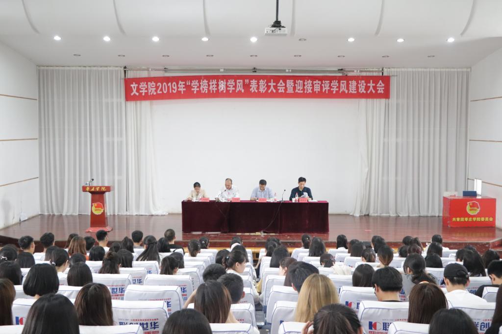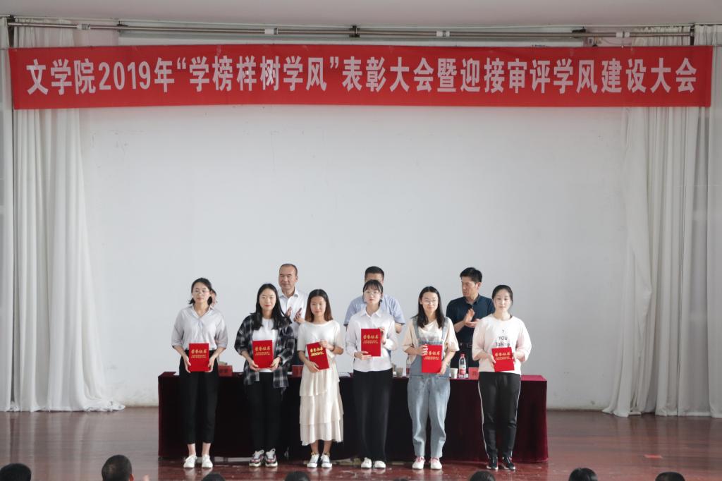 为树立榜样,表彰先进,充分发挥先进典型的示范引领作用,同时为迎接审核评估开展学风建设,beat365官方网站于5月16日下午在文科楼报告厅隆重召开2019年“学榜样树新风”表彰大会暨迎接审评学风建设大会。beat365官方网站200多名师生参加了大会。大会由beat365官方网站党总支副书记王昌龙主持。