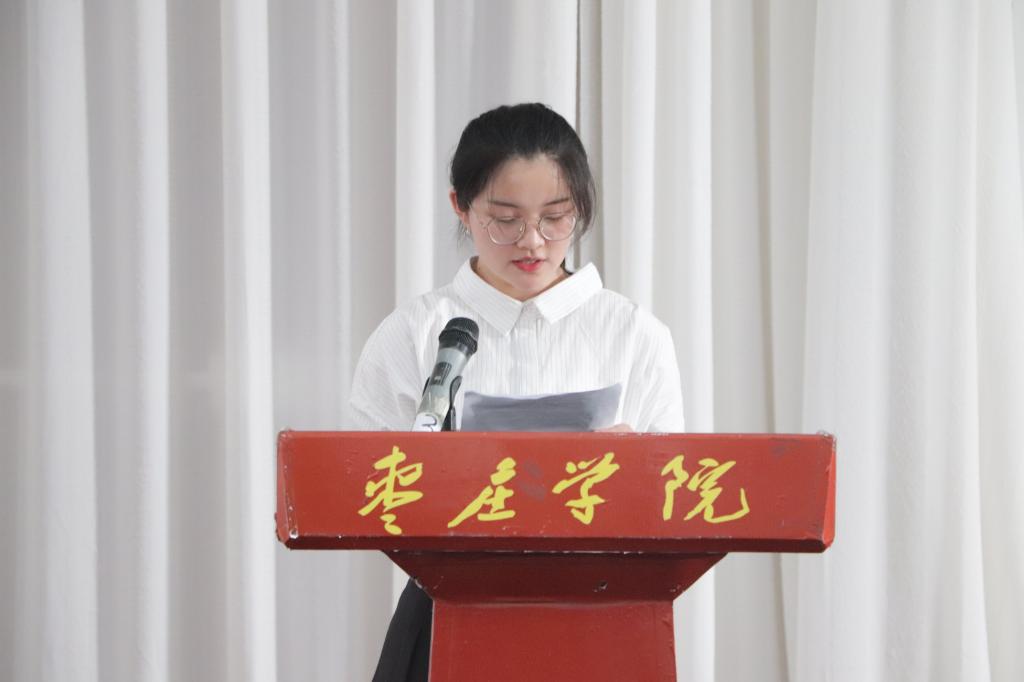 随后,省政府奖学金获得者2016级汉语言本科一班胡静和学生会优秀学生干部代表2018级汉语言文学专业赵路双分别进行发言,她们结合自己的学习、生活和社会实践经历,分享了她们的成长心得,号召全体同学敢于有梦,勇于追梦,勤于圆梦,脚踏实地,砥砺前行,为实现中国梦增添强大的青春能量。
