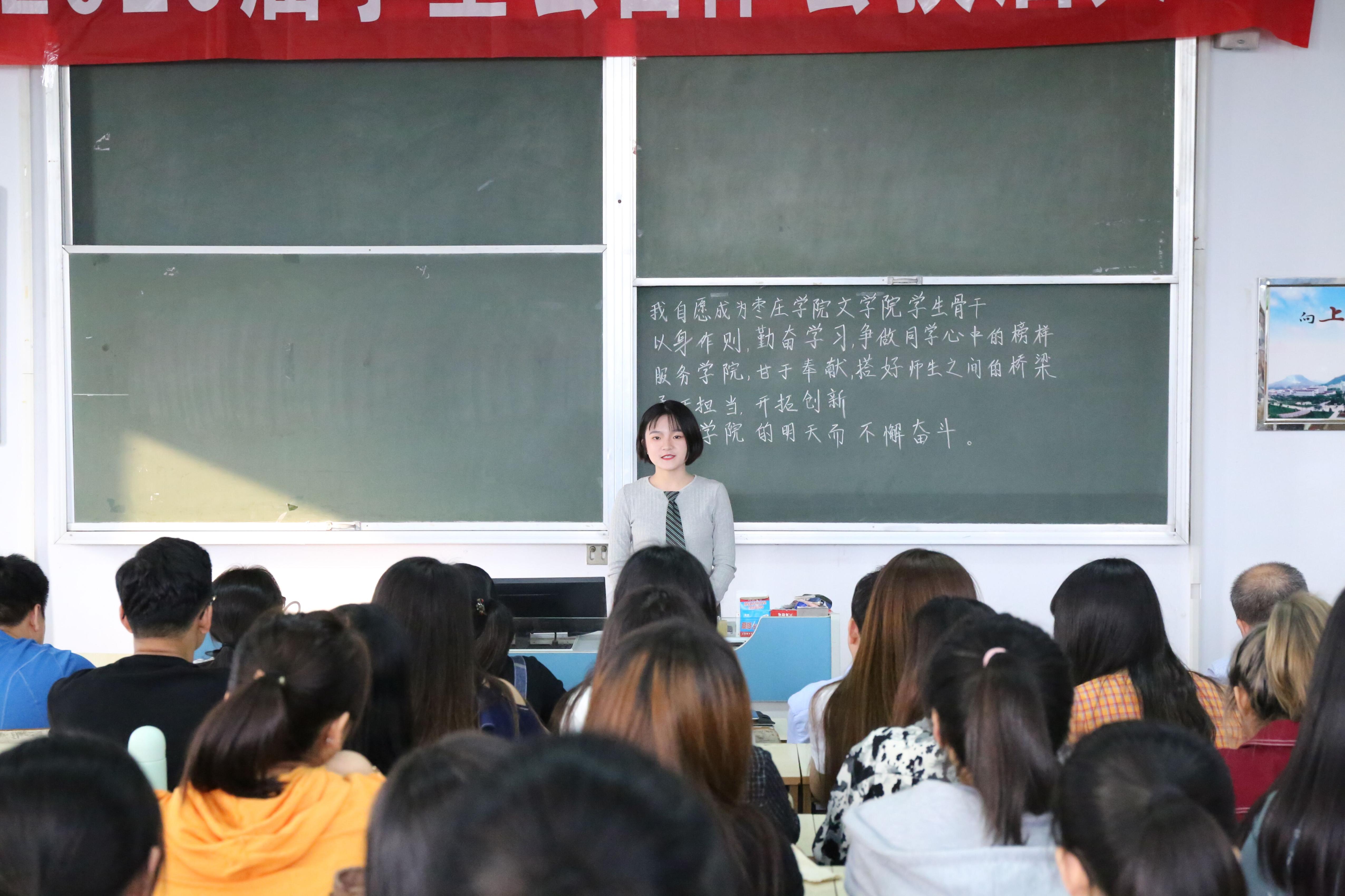 会议第一项由新老学生会、自律会主席进行发言,2019届学生会主席王惠、自律会主席滕晓彤回首了一年来在学生会的收获并对新一届学生会给予了新的期望, 2020届学生会主席李志霄、自律会主席李秀青展望了新一届学生会今后开展的工作。