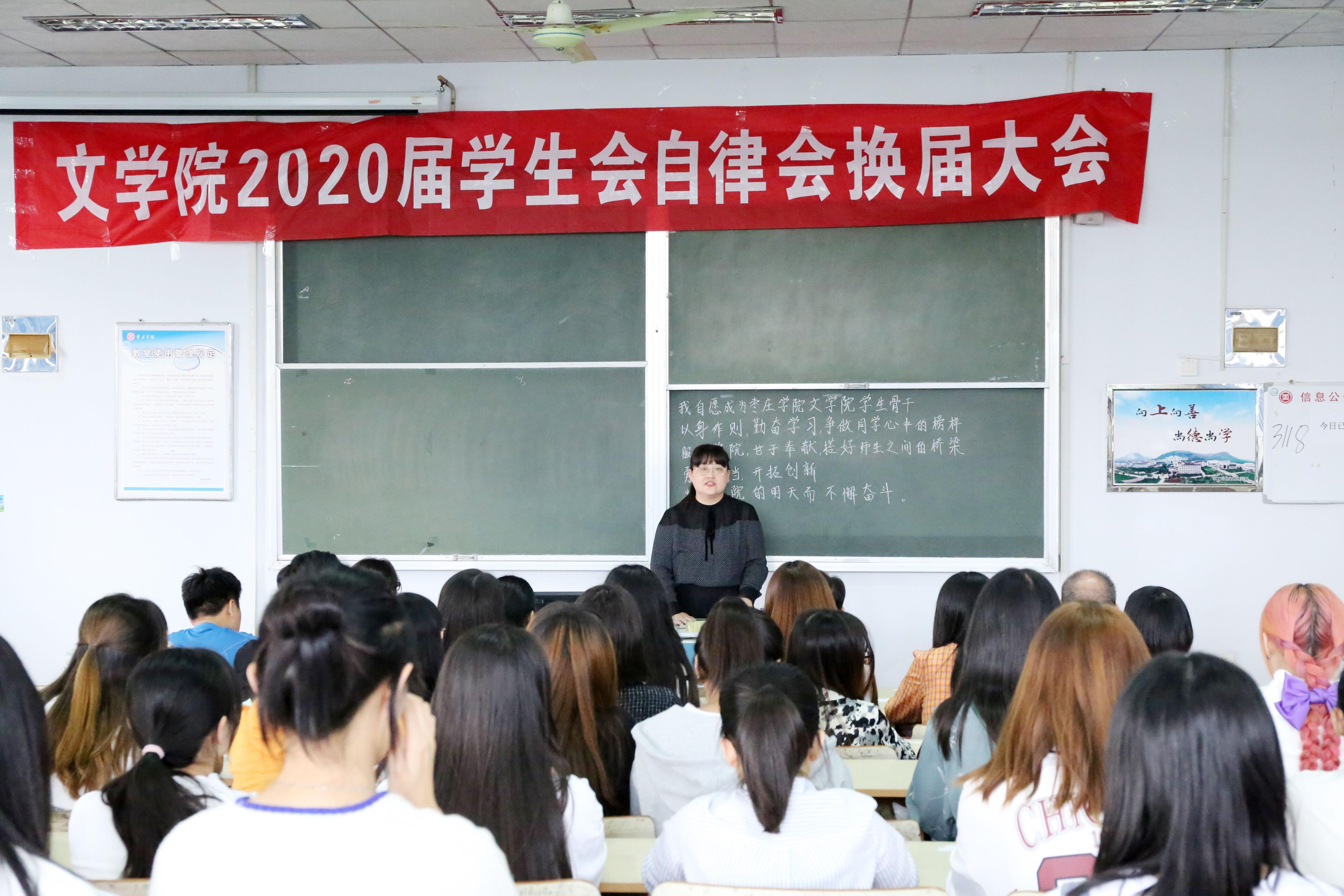 9月30日下午,beat365官方网站在文科楼217举办2020届学生会、自律会换届大会。beat365官方网站党总支书记宋建修老师、副书记王昌龙老师、各班辅导员老师及学生会、自律会新老成员80余人参加本次换届大会,本次会议由团总支书记韩笑老师主持。