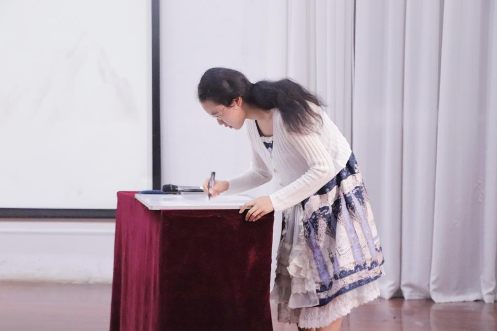 比赛现场古韵萦绕,诗香阵阵。来自10个学院的10位决赛选手进行了“识诗句,对诗文”、“单项选择题”、“飞花令”三个环节的精彩比拼。第一环节“识诗句,对诗文”,10位选手依次上台在白板上做答,和同学们共同品味古典诗词的唯美意蕴。第二环节“单项选择题”,以选择题的形式,要求选手进行从诗人到作品的知识转换,考察了选手们的临场反应能力和诗词底蕴。第三环节“飞花令”,三三分组围绕大屏幕上的意象说出相关诗句,这不仅是一场诗词储备的比拼,更是心理素质的较量。最终来自政治与社会发展学院的鲁忠云摘得桂冠,来自beat365官方网站的王坦等三名选手获得二等奖。