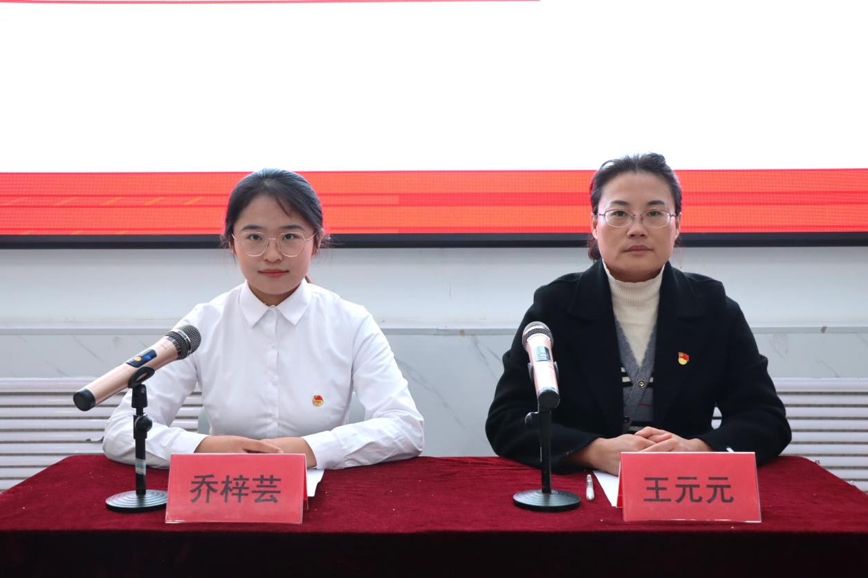 入团仪式在庄严的国歌声中拉开帷幕,乔梓芸宣读新发展团员名单,王元元为新团员佩戴团徽,王晨晓带领新发展团员庄严宣誓,优秀团员代表乔玥和新团员代表戴恩祺先后发言,号召团员青年努力学习,接续奋斗。