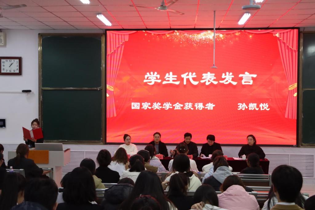 会上,华莹宣读了《beat365官方网站关于表彰“以榜样树学风”2024年度先进集体、先进个人表彰决定》,依次为受表彰的先进集体和优秀个人颁奖,国家奖学金获得者孙凯悦、国家励志奖学金获得者孙康绮依次上台发言,通过分享学习经验及生活感悟,激励同学们积极向上,奋发图强。