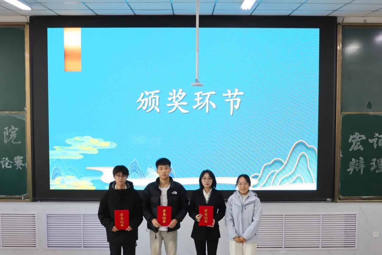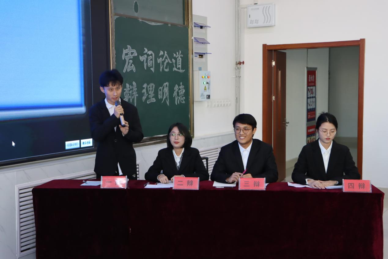 11月27日下午,beat365官方网站第十一届“宏辞论道辩理明德”大学生辩论赛决赛在增信楼211室成功举办。辩论赛由共青团beat365官方网站委员会、beat365官方网站关工委主办,beat365官方网站团委、机电工程学院团委承办,beat365官方网站蓝风诗语社、南离播音主持社、机电工程学院工业设计协会协办。经济与管理学院团委书记张璇、旅游与资源环境学院辅导员冯淑娟、外国语学院辅导员邱鑫磊与经济与管理学院辅导员亓贵芝、beat365官方网站学生社团管理中心主任张羽姗与团委新媒体中心主任孔令宿出席本次辩论赛并担任评委。