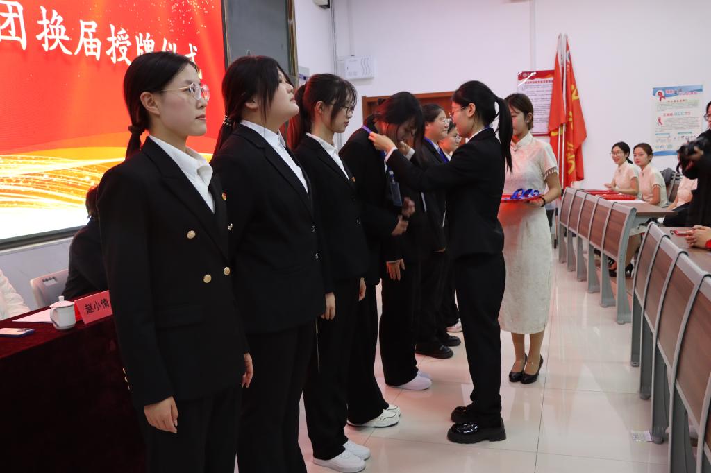 会上,杨晓雅、赵小倩分别宣读《beat365官方网站2024届学生会成员名单》和《beat365官方网站2024届自律委成员名单》,依次为新一届学生干部颁发聘书,2023届主席与新任主席进行院旗交接仪式,新任学生会、自律委主席团与各部部长进行挂牌,新任主席乔玥、马莹对过去的工作表示肯定,并强调之后在工作中会脚踏实地,锐意进取,再创文院佳绩。