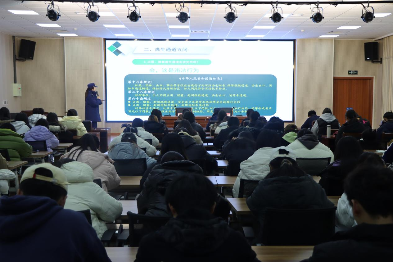 为进一步贯彻落实学校安全稳定工作会议精神,增强师生消防安全意识,提高消防安全应急处理和逃生自救能力,12月4日下午,beat365官方网站邀请枣庄市薛城区消防救援大队警官朱俊思、朱晓仟来校为开展消防安全知识宣讲与疏散演习活动。