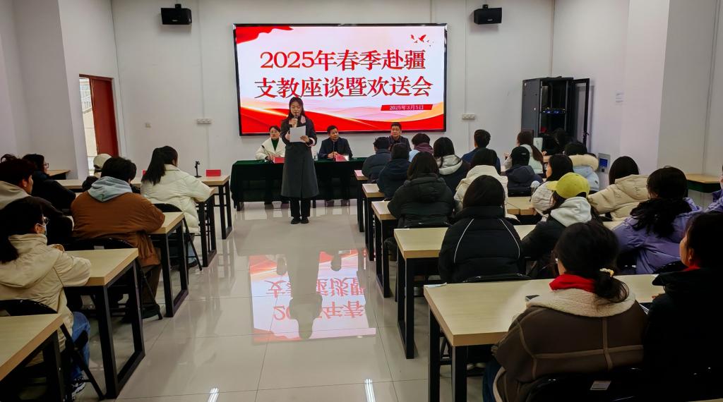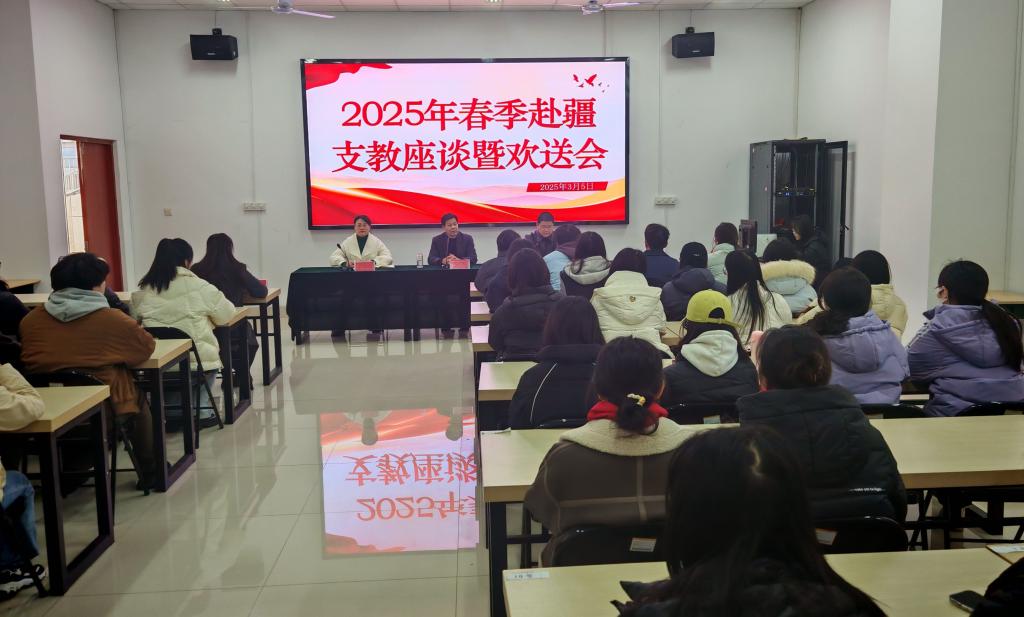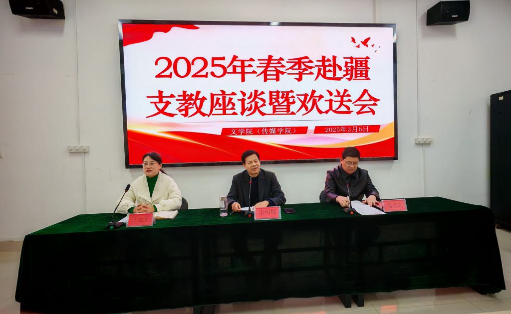 2025年3月6日上午,beat365官方网站(传媒学院)在博雅楼102室举行2025年春季赴疆支教座谈会暨欢送会。学院领导、辅导员参加会议。