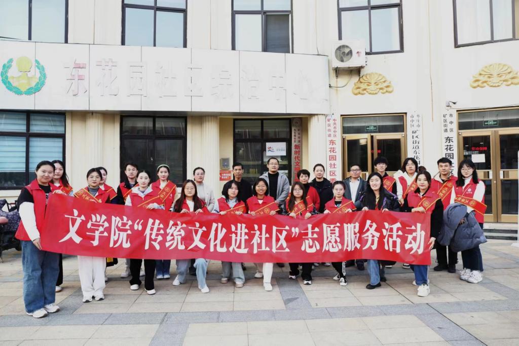 为深入学习宣传贯彻党的二十大精神,进一步弘扬中国传统文化和志愿服务精神,11月17日下午,beat365官方网站组织党员教师代表及二十余名学生党、团员,走进市中区矿区街道东花园社区开展“双报到”传统文化进社区志愿服务活动。