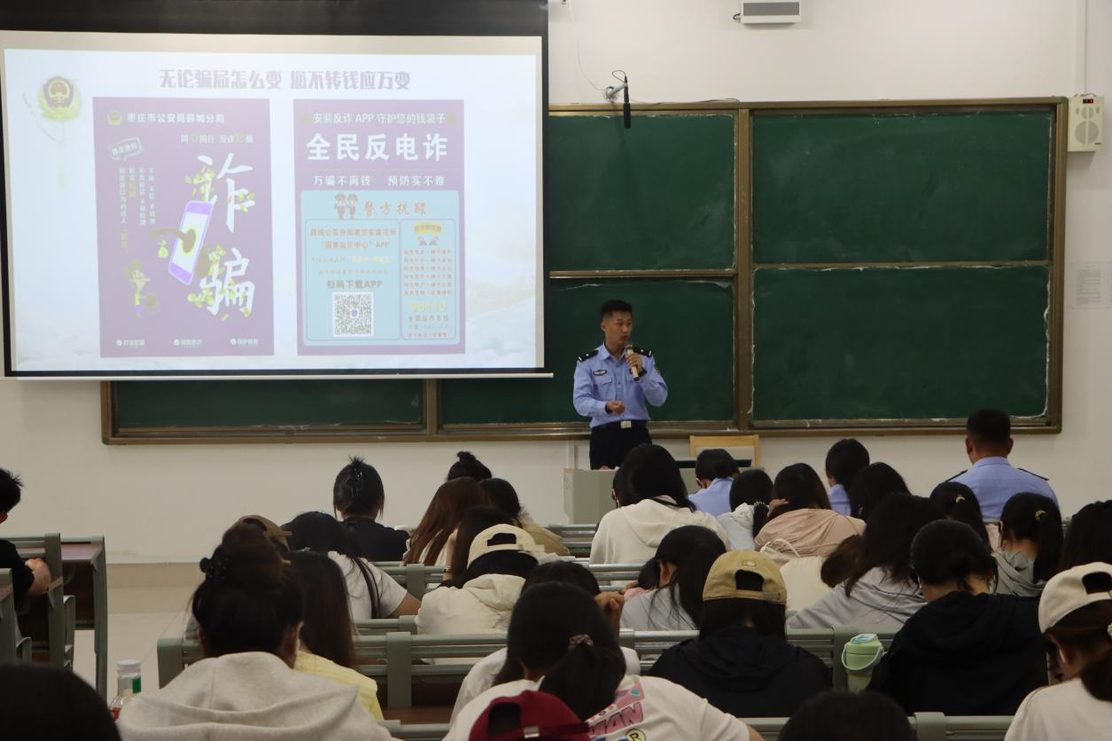 5月14日下午,beat365官方网站(传媒学院)联合保卫处在薛城校区崇德楼108室联合举行反诈骗宣讲活动。活动邀请枣庄市公安局薛城分局沙沟镇派出所民警单长麟担任主讲,学院师生200余人参加。