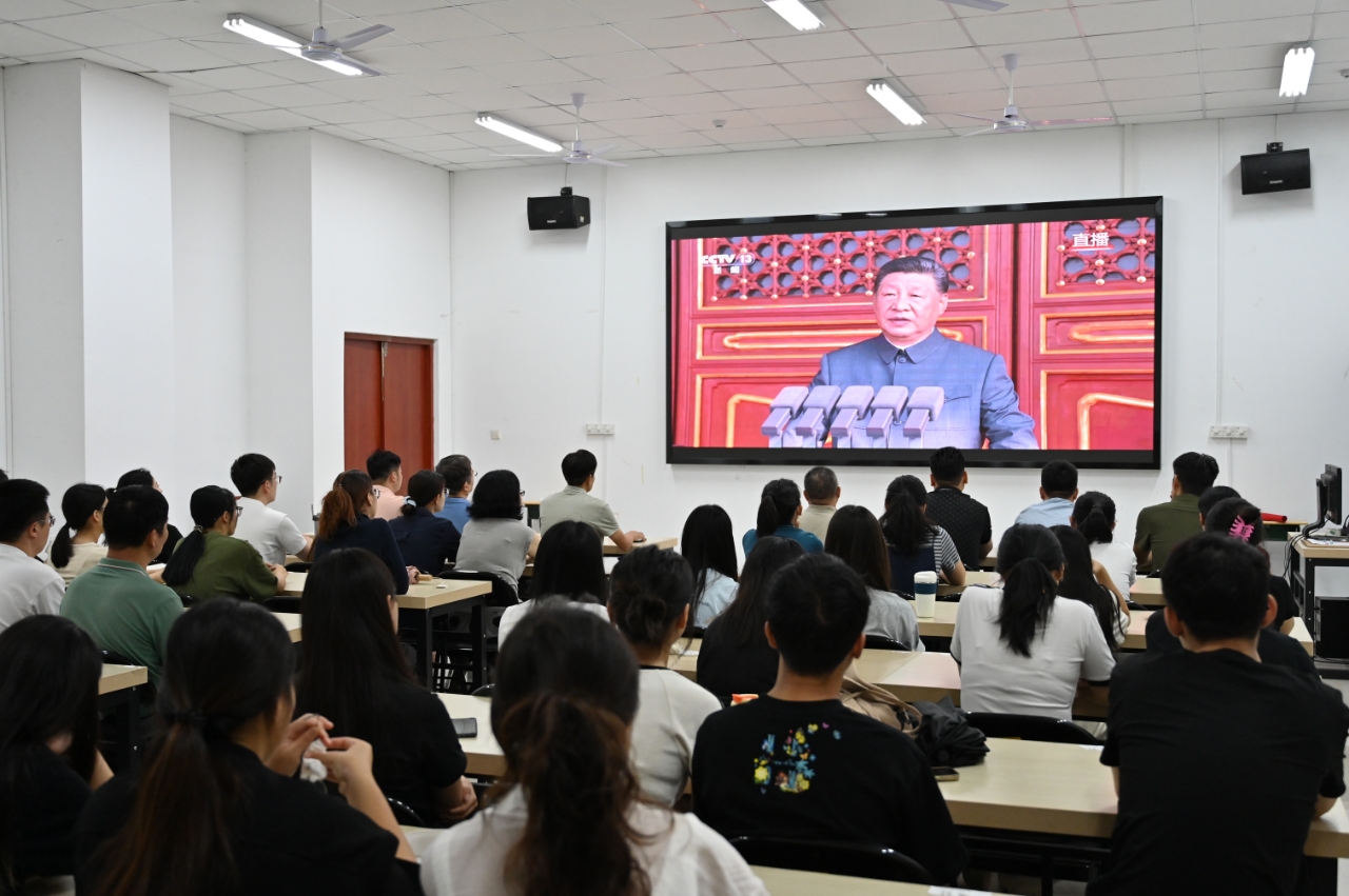 beat365官方网站(传媒学院)组织师生观看抗战胜利80周年阅兵式直播
