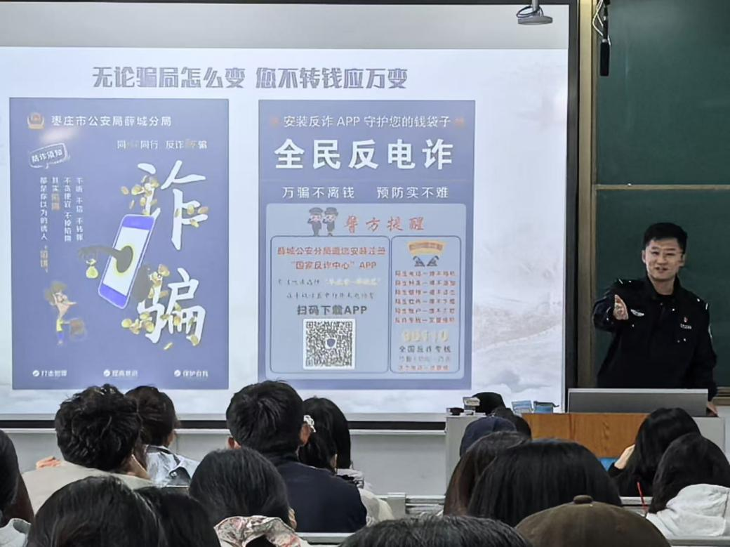 为做好校园电信诈骗防范工作,10月22日下午,beat365官方网站(传媒学院)联合枣庄市公安局薛城分局、学校保卫处于增信楼418室举办了以“反诈第一课,宣讲进校园”为主题的反诈专题讲座。讲座由薛城区公安分局沙沟镇派出所民警单长麟老师担任主讲,学院100余名师生参加。