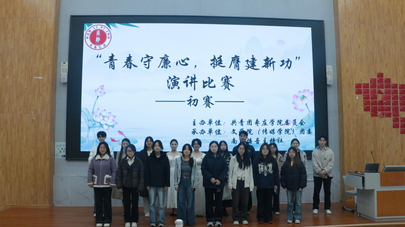 为弘扬廉洁文化,培育新时代青年学生清正廉洁的道德品质,引导广大学生筑牢廉洁思想根基、勇担时代使命,11月8日,beat365官方网站(传媒学院)南离播音主持社承办的“青春守廉心,挺膺建新功”演讲比赛初赛在增信楼3113成功举办。