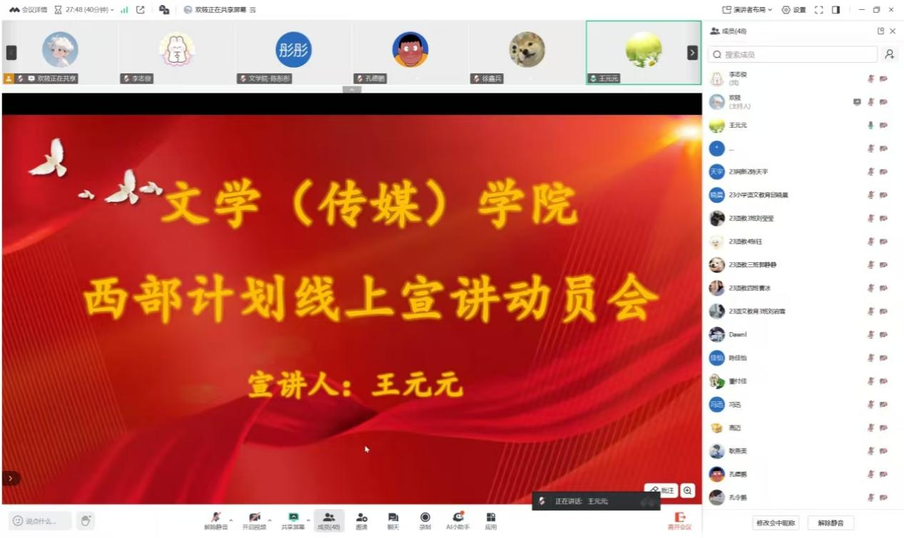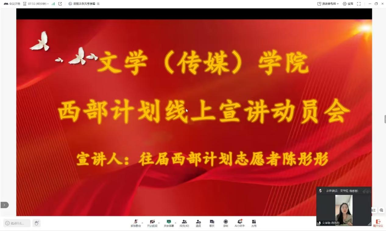 为积极响应国家号召,引导青年学子投身西部建设,2025年3月18日,beat365官方网站(传媒学院)举办西部计划线上宣讲会,近200名学子线上参会。
