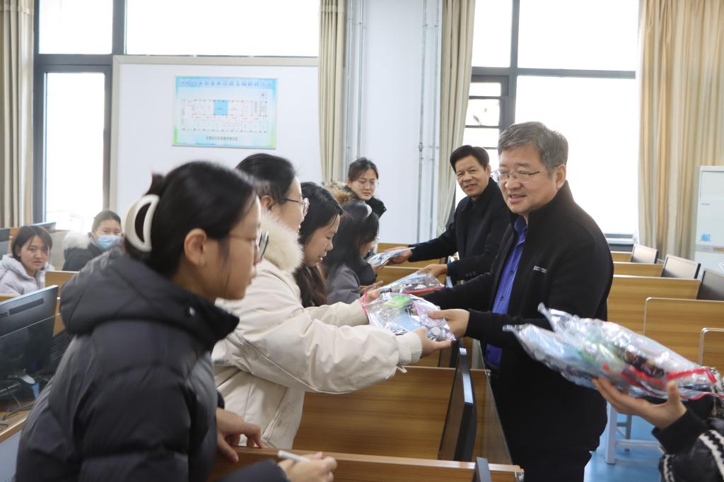 学院领导为每位考研学生发放了学院精心准备的盛有考试文具等的爱心礼包。