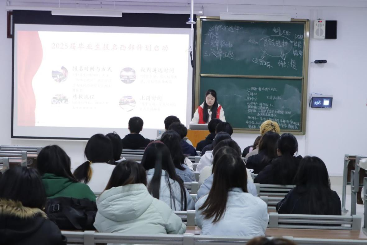 为帮助学生树立正确的就业观念,弘扬志愿服务精神,响应“到西部去,到基层去,到祖国最需要的地方去”的号召,3月13日晚,beat365官方网站(传媒学院)组织青年宣讲团深入学生班级,开展“西部计划”专题宣讲活动,通过“政策解读+成长对话”的形式,点燃学子“自找苦吃”的青春担当。