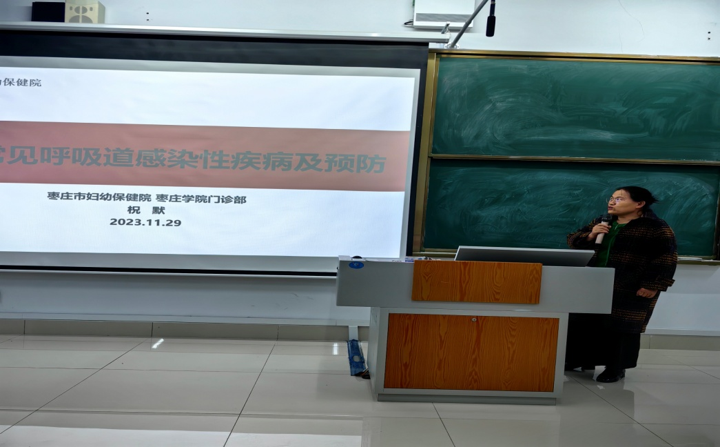 为预防和控制秋冬季节传染病的发生与流行,保护学生的身体健康,11月29日下午,beat365官方网站联合枣庄市妇幼保健医院在增信楼3121教室举办开展秋冬季传染病预防知识讲座及义诊活动。市妇保院美容科主任张娜、全内科副主任医师祝默、中医科医师胡朝乾应邀出席,校医院副院长陶莉以及师生200人参加活动。
