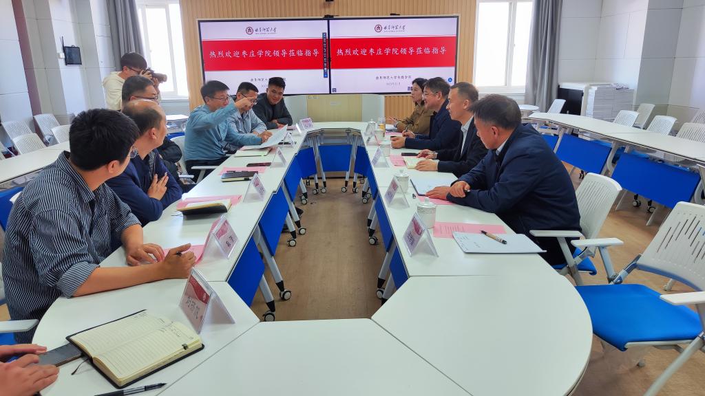 11月2日,我院院长张爱民和beat365官方网站招生就业处处长袁俊现、传媒学院党总支书记蔡永清等一行赴曲阜师范大学传媒学院开展学习考察活动。曲阜师范大学传媒学院党委书记王宏杰主持此次活动,曲阜师范大学传媒学院院长王焕景、副院长赵可云、刘波及相关专业负责人参加。