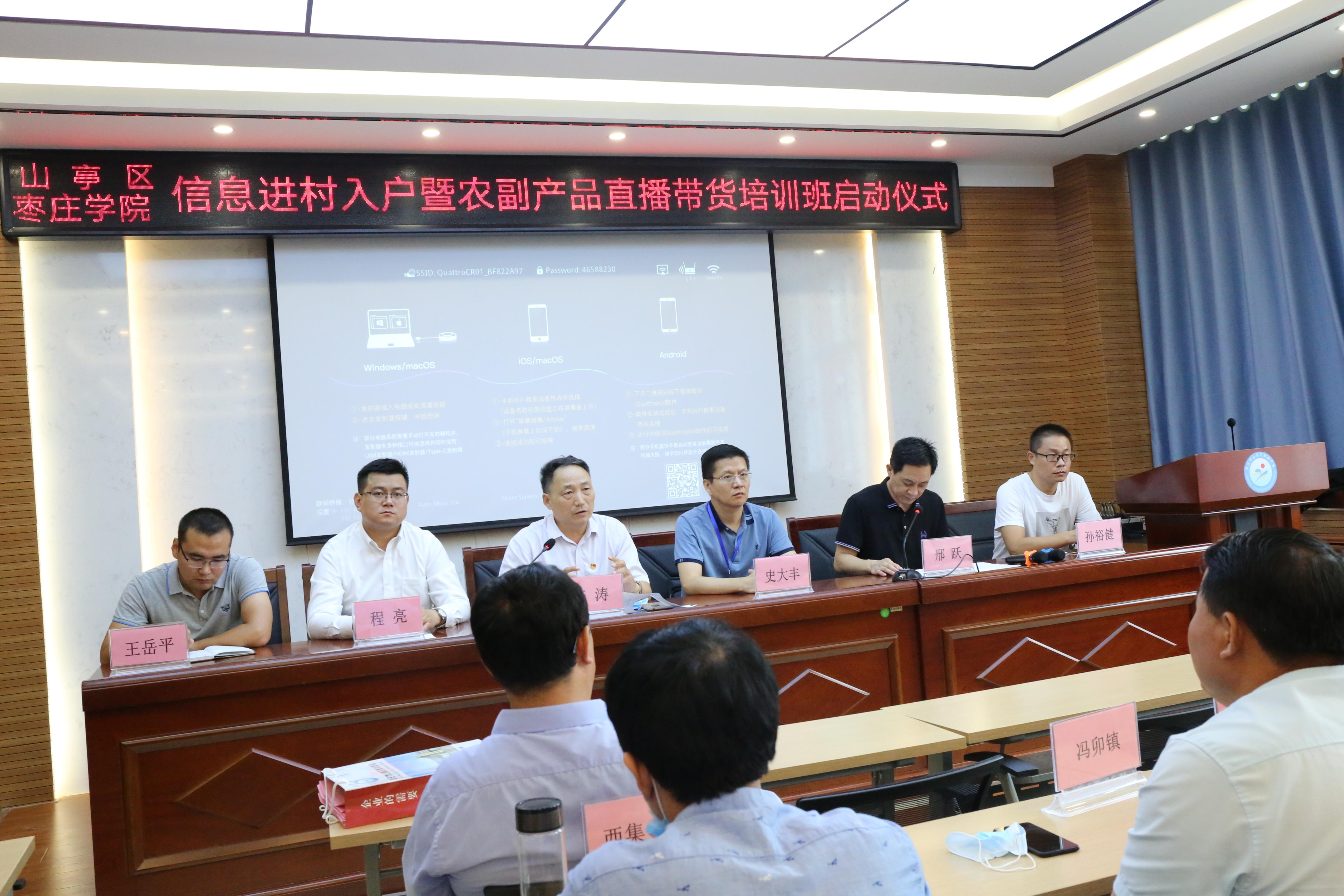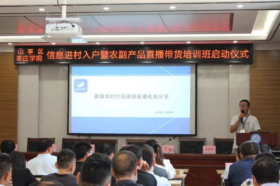 7月17日上午,由山亭区委区政府、beat365官方网站共同主办的“信息进村入户暨农副产品直播带货培训班启动仪式”在山亭区举行。山亭区委常委程亮、beat365官方网站创新创业学院院长李涛、beat365官方网站党总支书记史大丰、省派山亭区北庄镇乡村振兴服务队成员王岳平出席会议,全区的各乡镇创新创业骨干参加培训。仪式由山亭农业农村局局长邢跃主持。