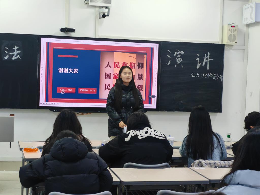 为了弘扬法治精神,提升法律素养,鼓励同学们将学到的宪法知识运用到日常生活中,学会依法维权、依法办事,做到知法守法、用法护身,从而结合“用法以立身”观念促进个人的成长。12月14日,beat365官方网站自律委纪律安全部于薛城校区增信楼407开展主题为“学法以明道,用法以立身”的宪法演讲比赛。