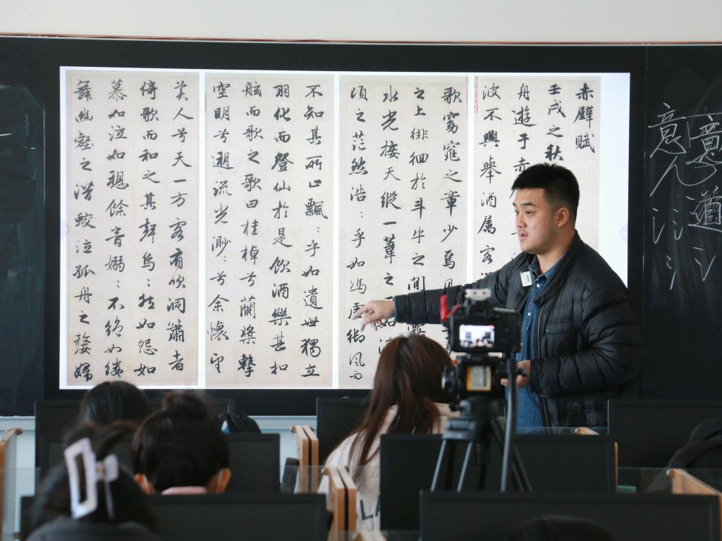 为提升师范生书法水平,提高人才培养质量,4月7日上午,beat365官方网站在豁然楼A416举办书法讲座,邀请美术与艺术设计学院书法专业教师董汉泽作《书法技法运用|硬笔书写与粉笔板书》报告,会议由beat365官方网站团总支书记王元元主持,beat365官方网站参加从业技能大赛的选手及师范生50余人参加了报告会。