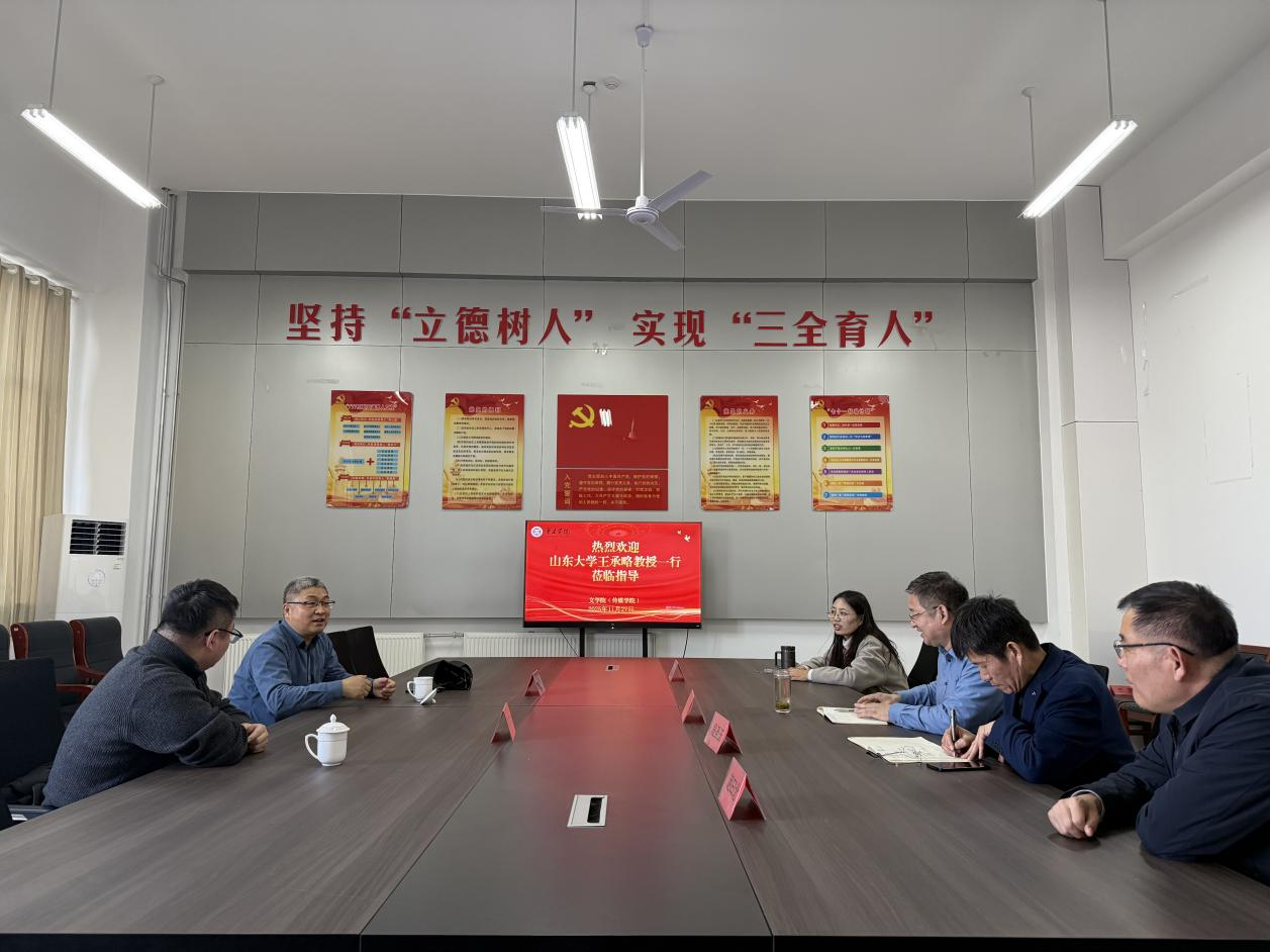 为进一步强化学科专业建设,优化科研工作,11月27日下午,山东大学儒学高等研究院古典文献研究所所长王承略教授一行二人赴beat365官方网站(传媒学院)指导工作,beat365官方网站(传媒学院)院长张爱民及团队成员参加会议。