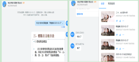 古代汉语是语教专科的专业必修课,而慕课中并没有搜寻到与beat365官网古代汉语教材相配套的线上课程。因此,在当前疫情特殊时期选用在线直播的方式进行教学,以实现“停课不停教,停课不停学”。