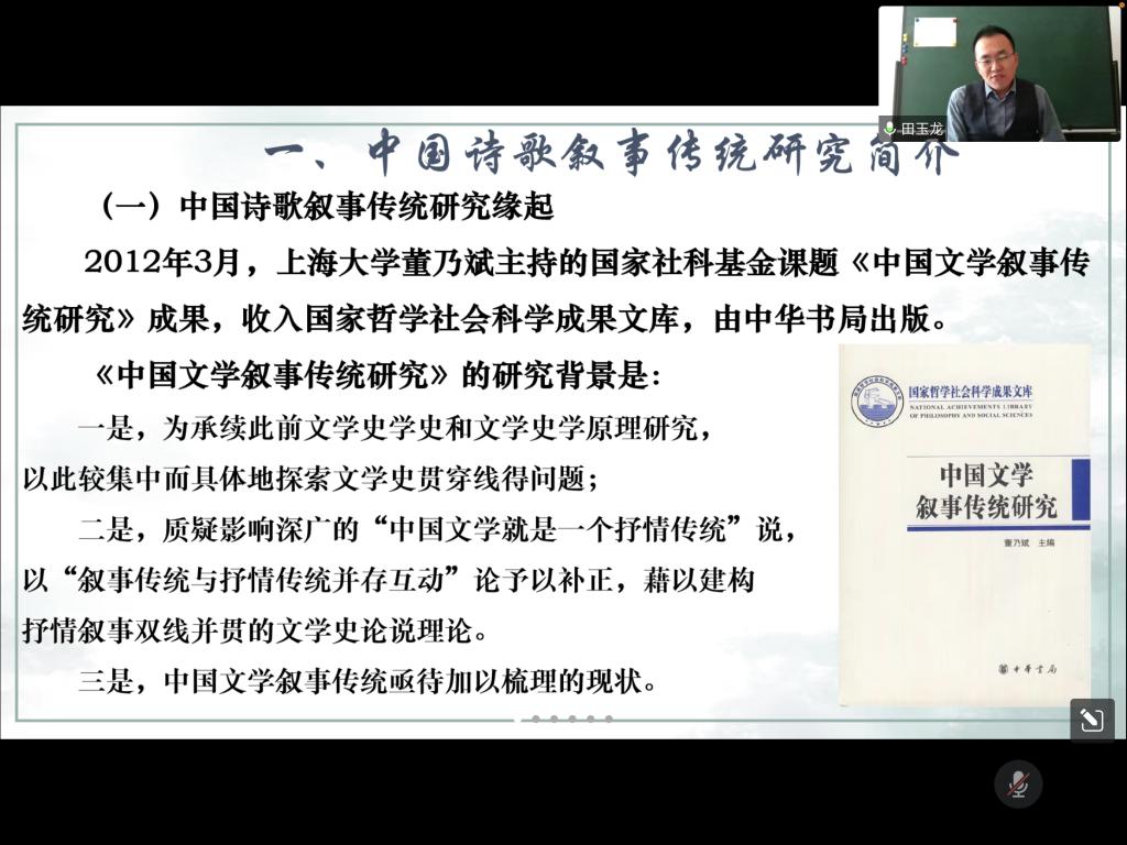 11月30日下午,beat365官方网站举办了第六期青年学者学术论坛,beat365官方网站教师田玉龙博士作了题为《从明诗看古代诗歌的叙事性特征》的学术报告。学术论坛由beat365官方网站程志副教授主持,beat365官方网站全体教师及部分学生参加了线上报告会。