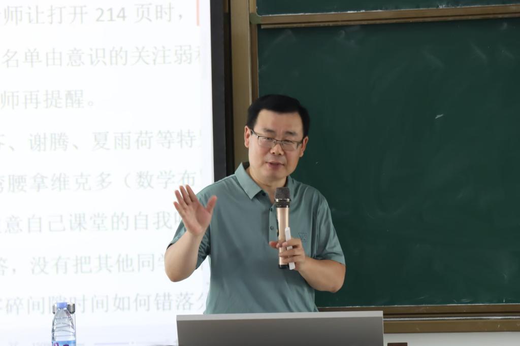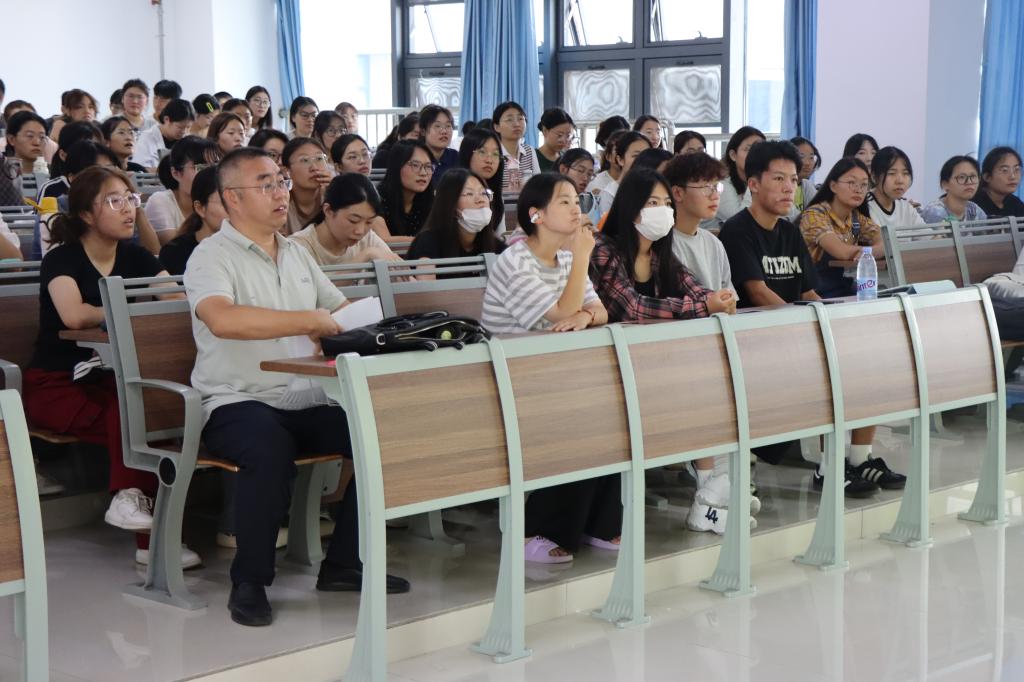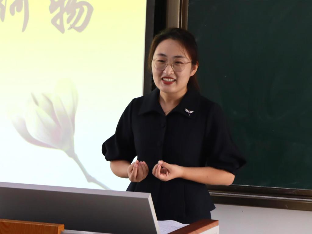 高婷婷老师以“师者”为主题,结合自身教学经历,从“敬”“诚”“省”三个方面对教师教学工作进行讲解。第一,敬畏职业,为党育人、为国育才;敬畏事业,在奋斗中实现教师的自我价值;敬畏学业,努力提升教学技能。第二,以真诚之心对待每一位学生,把教师最真诚的一面展示给学生,和家长携手共同呵护学生。第三,在循环往复的反思中成就自我,在教学实践中提升教学能力。针对师范生技能大赛,高老师强调一定要扎实学好专业知识,在备赛时思维要新、视野要广,在日常生活中注重师范技能的培养和提高。