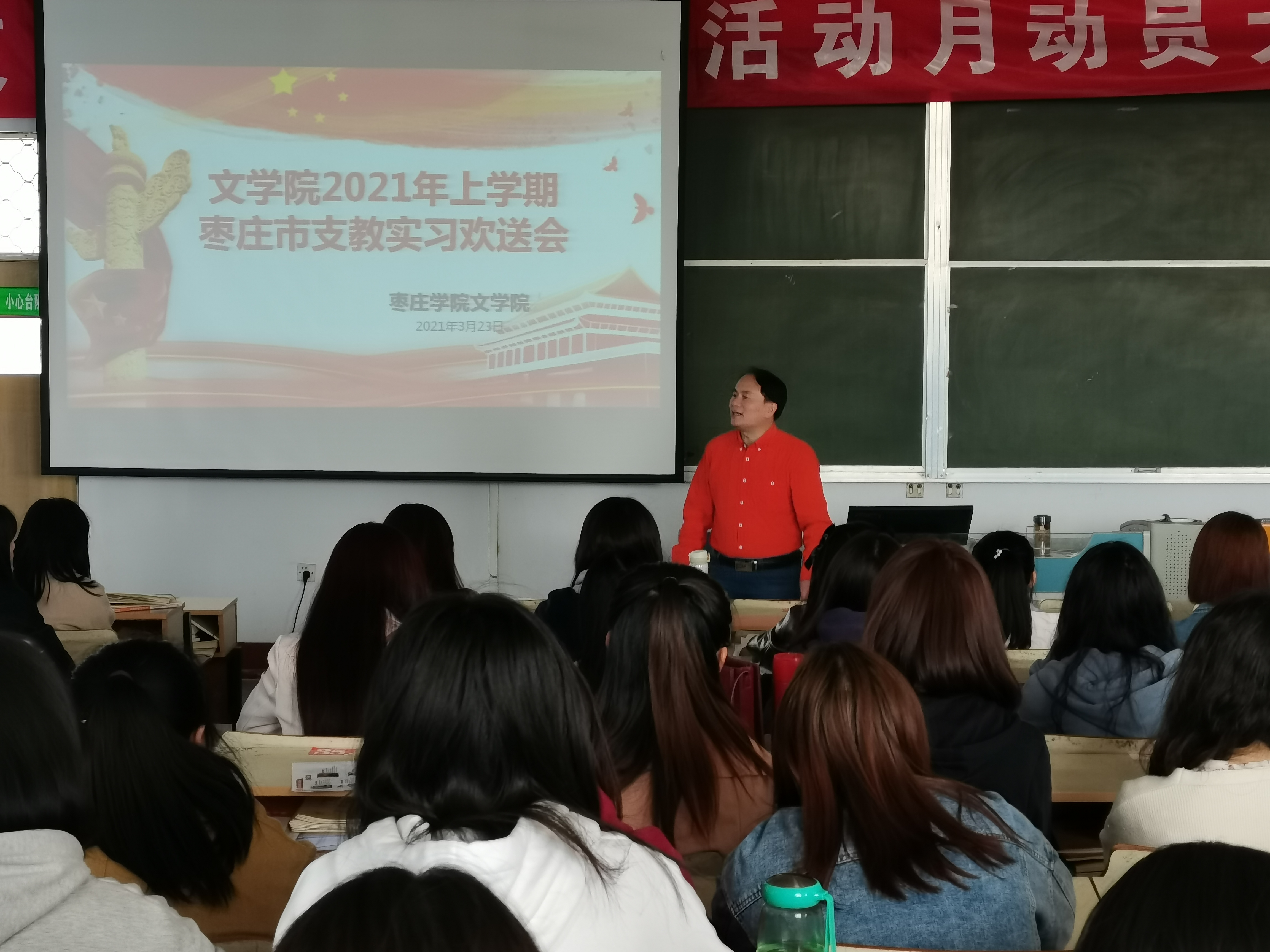 3月23日下午,beat365官方网站在文科楼217教室举办了2021年上半年枣庄市支教实习欢送会。本次欢送会由beat365官方网站党总支书记宋建修主持,即将奔赴枣庄各市区支教的学生到场参加。