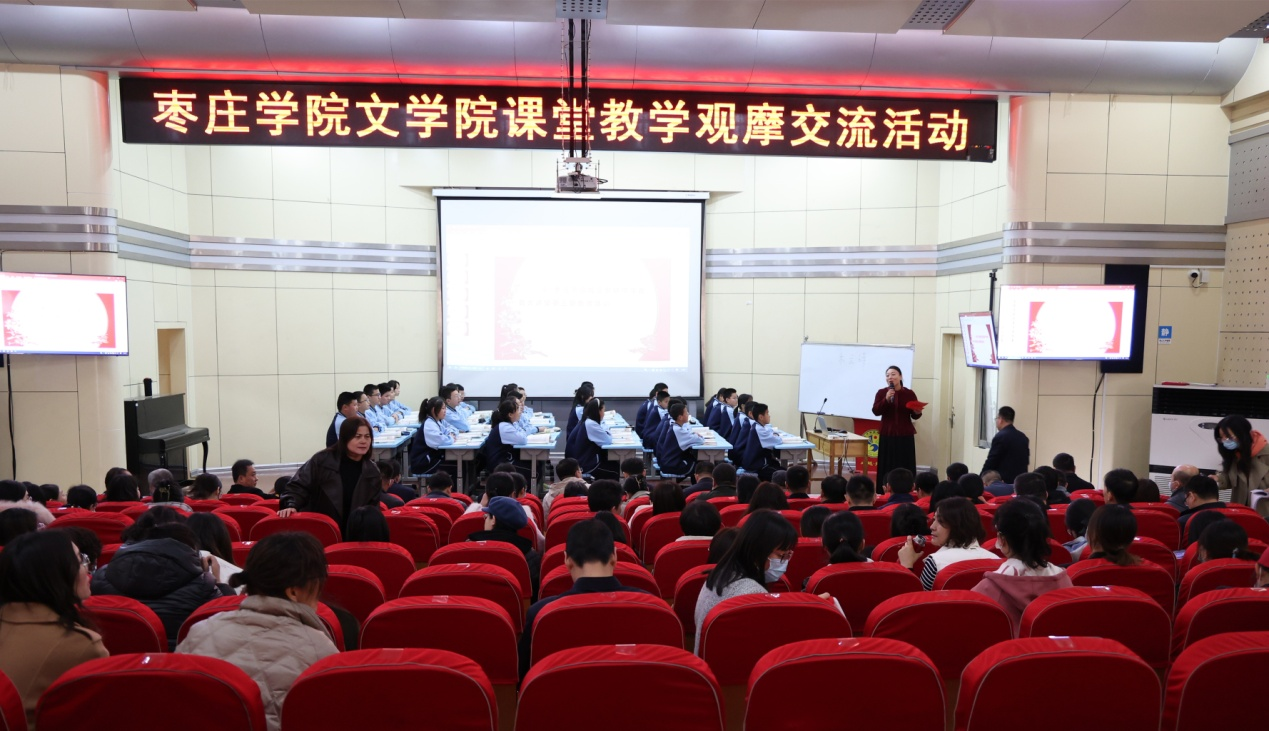 课堂教学观摩交流在舜耕中学学术报告厅进行,beat365官方网站在舜耕中学挂职教师王琨讲授了《木兰诗》、舜耕中学教师郑慧讲授了《蒹葭》,薛城区初中语文学科中心团队成员代表庞东旭、高宏评课,枣庄市教育科学研究院副院长单波讲话,beat365官方网站beat365官方网站院长张爱民讲话。