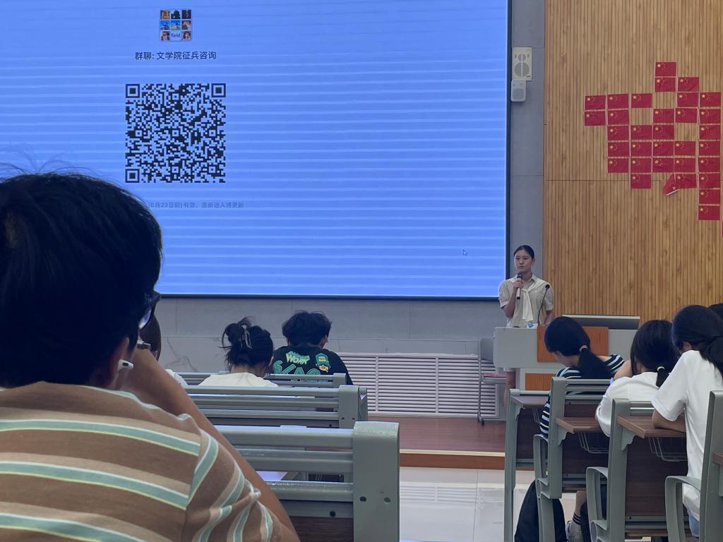 首先,宣讲人董嘉豪和朱保逸从征兵入伍的条件要求、国防的意义及大学生当兵入伍的优惠政策三个方面对参兵入伍内容进行讲解,并重点强调了“军强则国强,国强则民安”的国防重要性,呼吁同学们积极担当起党和人民赋予的新时代使命任务,为实现新时代强军目标贡献自己的青春力量。接着,两位宣讲人进一步向同学们介绍了应征入伍的基本流程和退役士兵的优惠政策,让同学们具体了解了征兵的相关内容并愿意将参军入伍作为自己未来职业发展的一种选择。